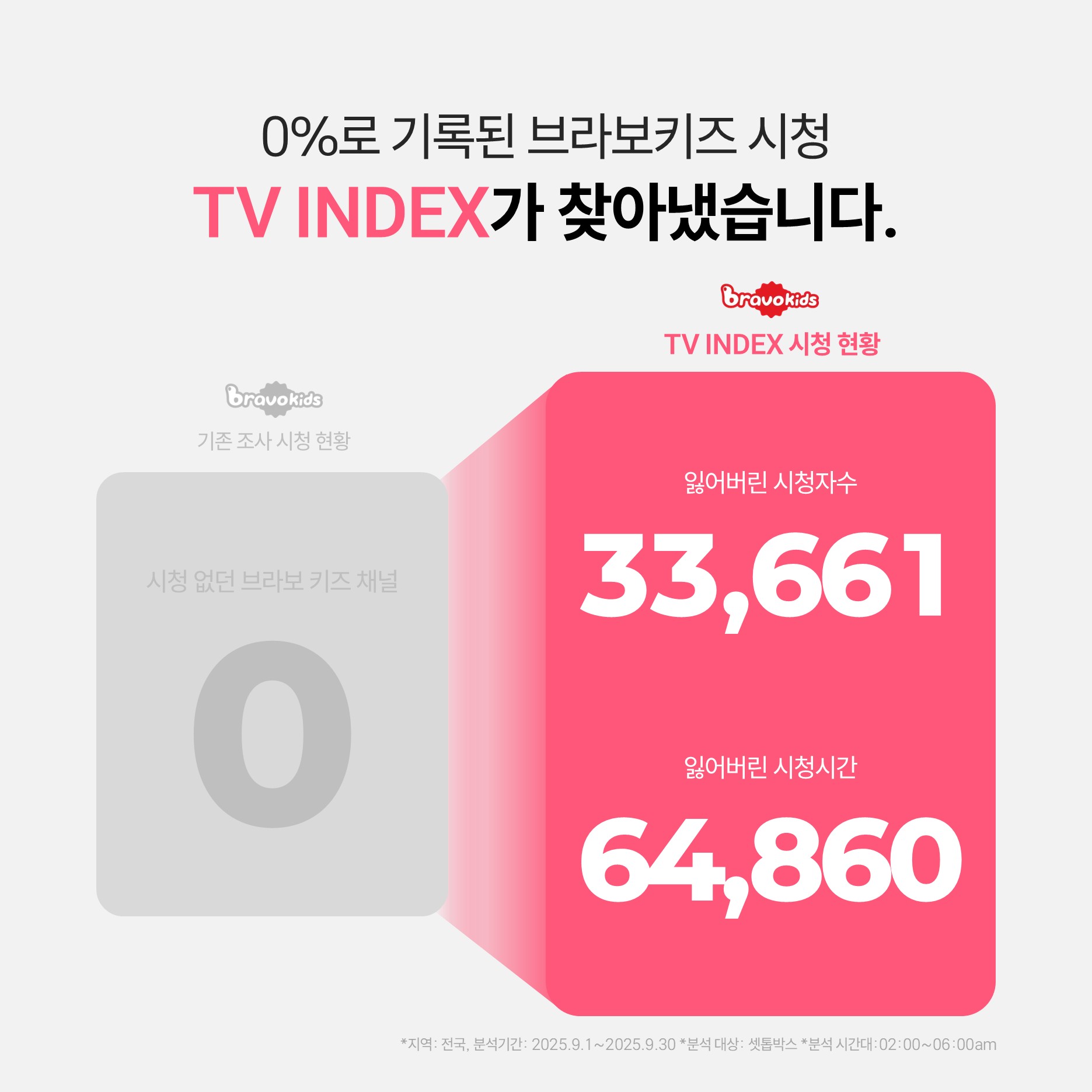 브라보키즈는 기존 조사에서 9월 한 달 내내 해당 시간대의 시청률이 '0%'로 기록된 채널이었습니다.